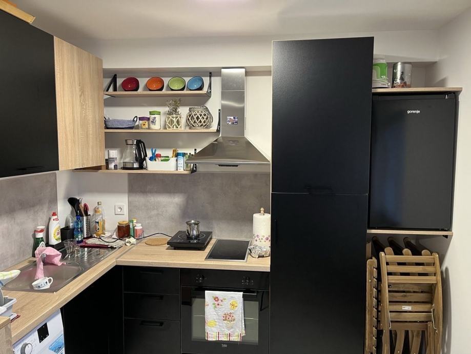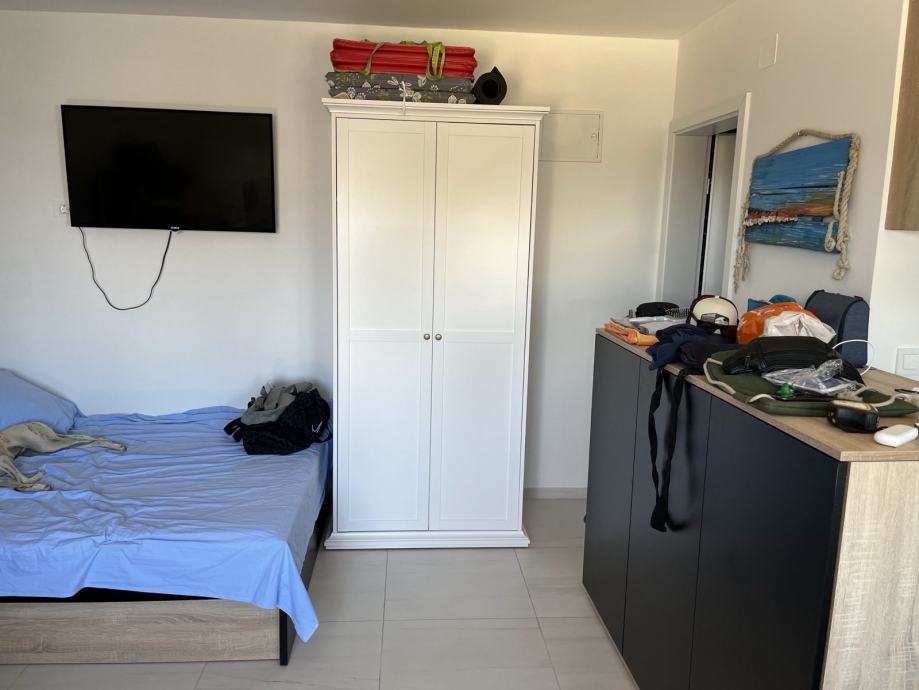 Neto površina apartmana je 25 m/2, plus balkon i terasa. Apartman je lijepo namješten, klimatiziran i ima osigurano parkirno mjesto.
