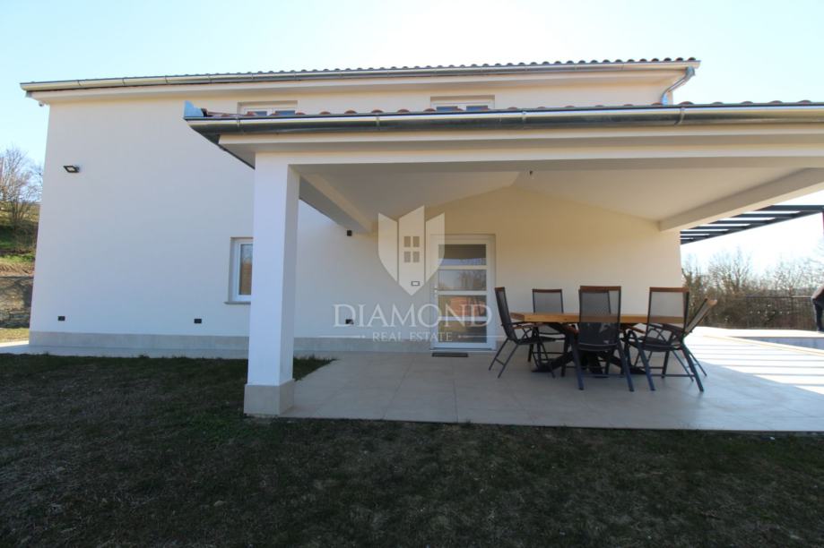 Na prostranoj okućnici smješteni su bazen, sunčalište, natkrivena terasa za opuštanje, prostor za rekreaciju te punjači za električne automobile.