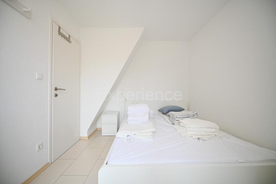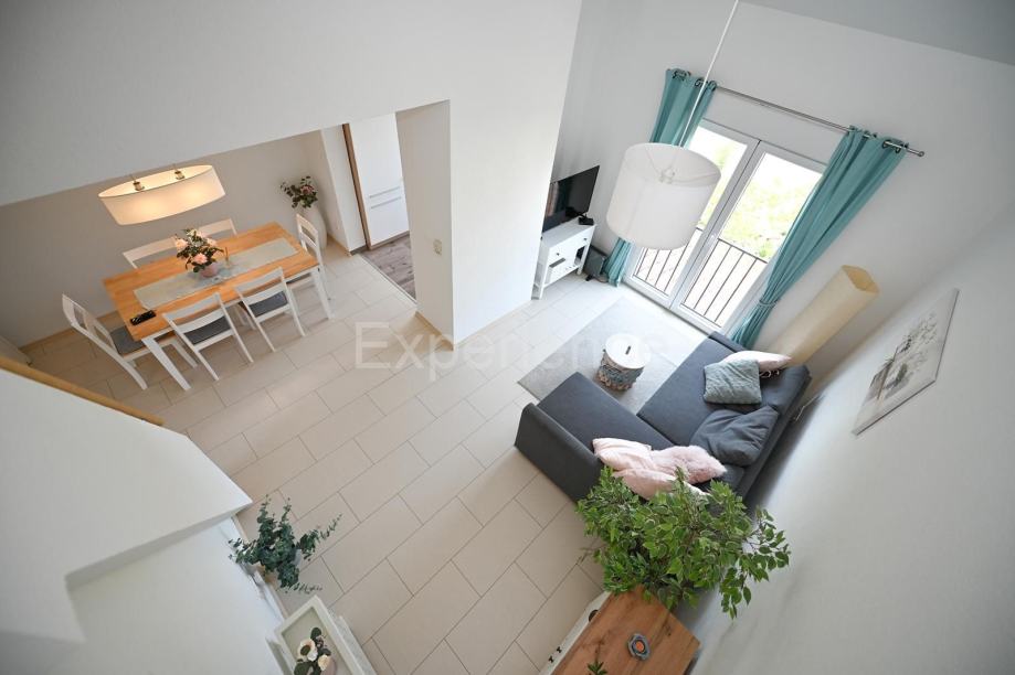Stan se prostire na dvije etaže:• Donja etaža obuhvaća predsoblje, modernu kuhinju, prostrani dnevni boravak sa blagovaonicom, spavaću sobu, te elegantno uređenu kupaonicu,• Gornja etaža obuhvaća predsoblje, dvije spavaće sobe i toalet.