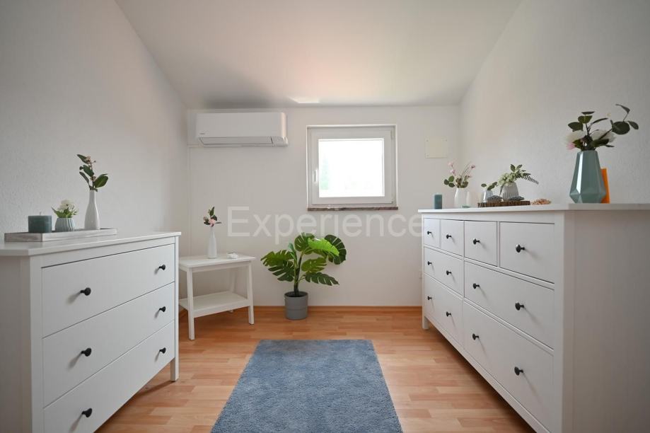 Stan je temeljito renoviran: • postavljena je nova PVC stolarija, • ugrađena su protuprovalna vrata, • izmijenjene su instalacije struje i vode, • kompletno obnovljena kupaonica, • obnovljene su podne obloge, • izrađeno je novo stubište, • novi kvalitetan namještaj i moderna rasvjeta, • inverter klima uređaji u svim prostorijama za ugodnu temperaturu tijekom cijele godine.