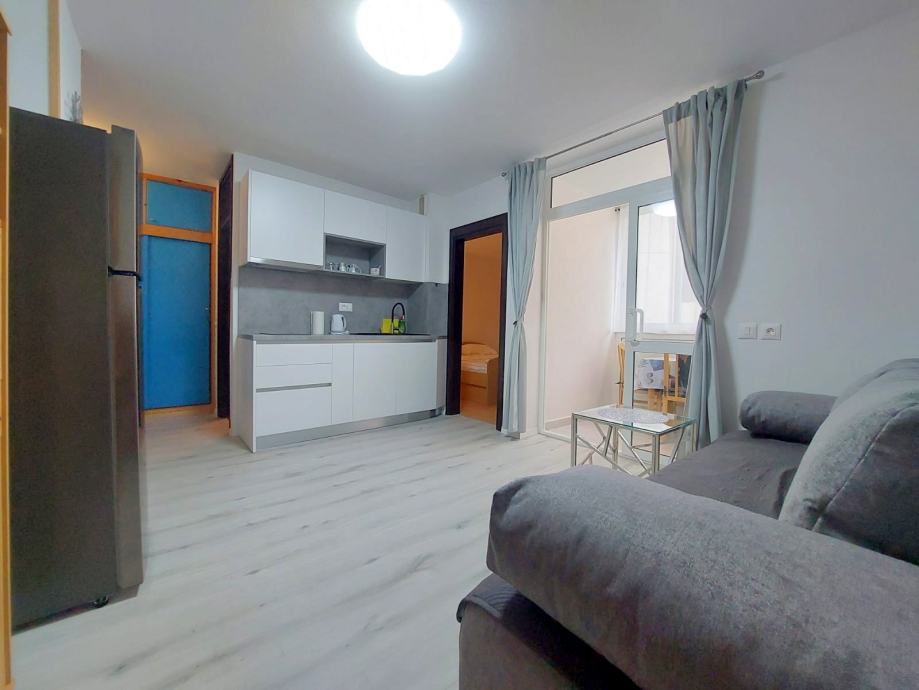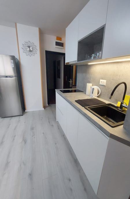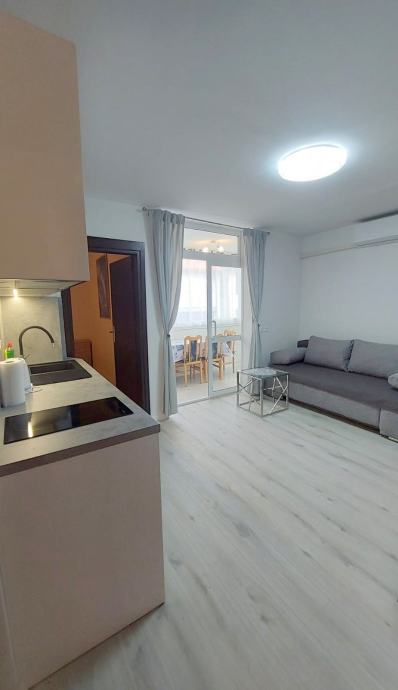 Stan se sastoji od kuhinje sa blagovaonom i dnevnog boravka, spavaće sobe , kupatila i balkona.