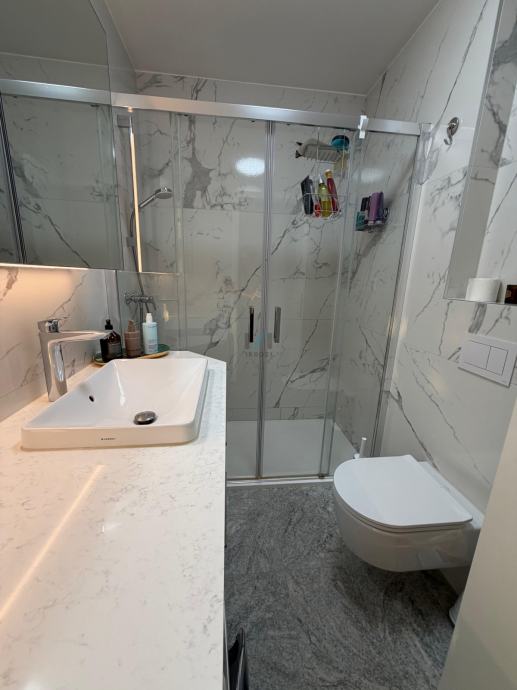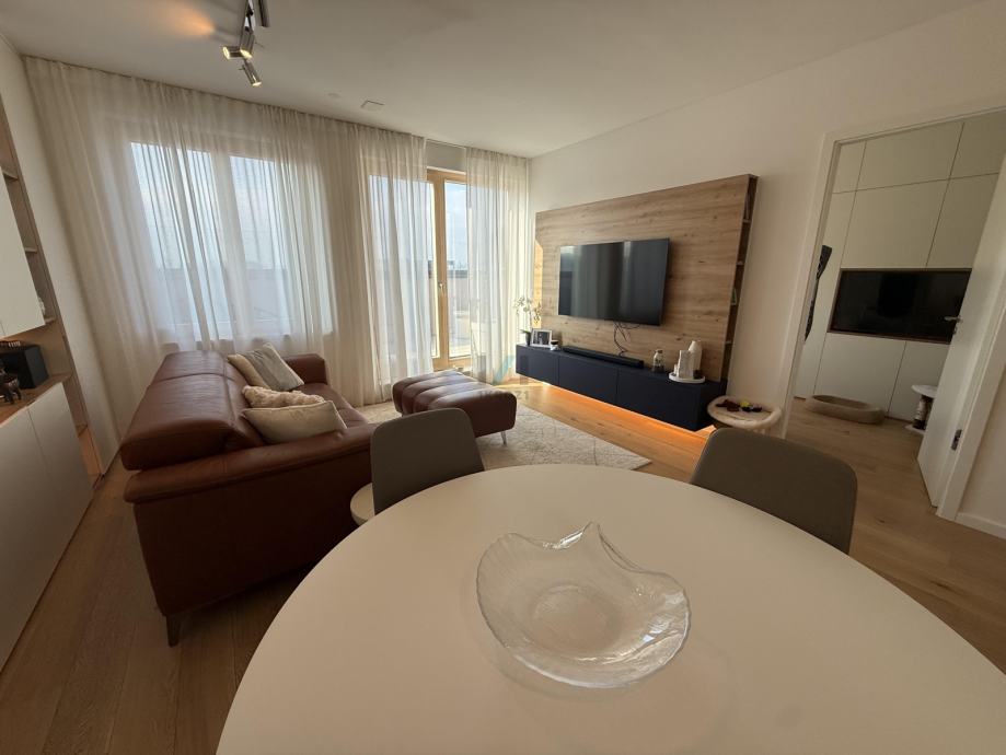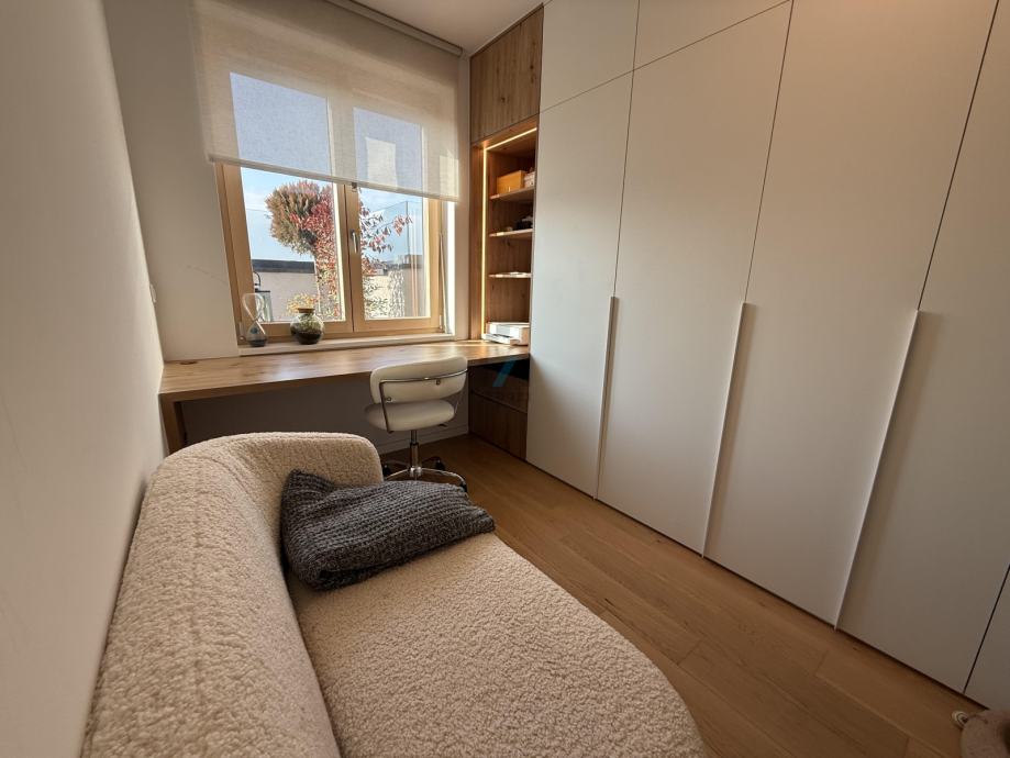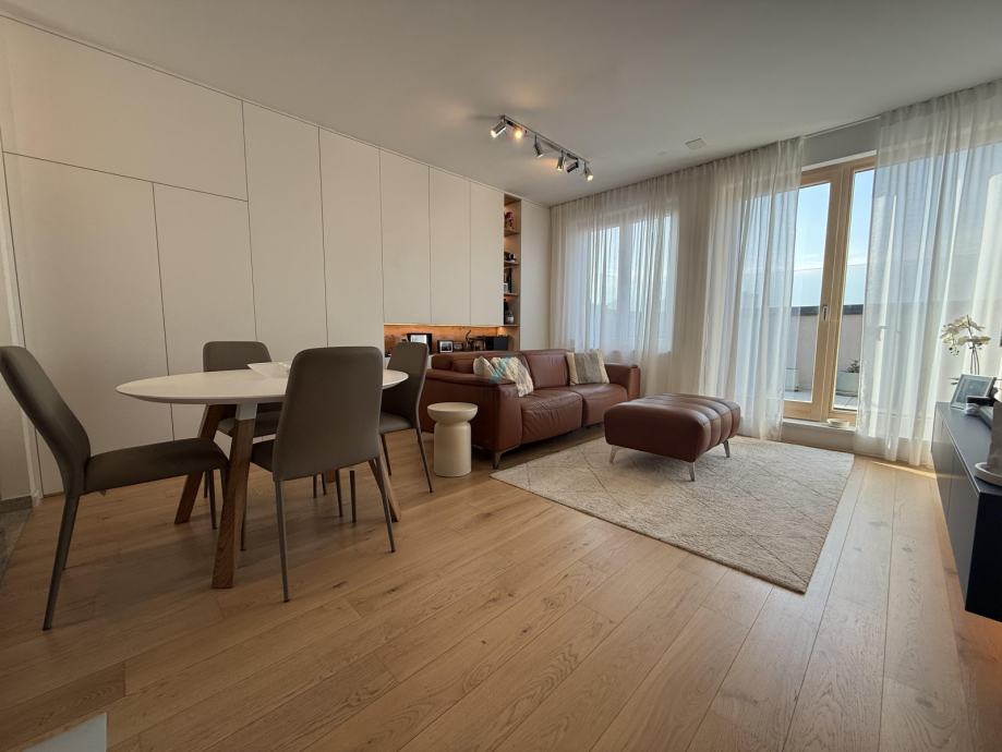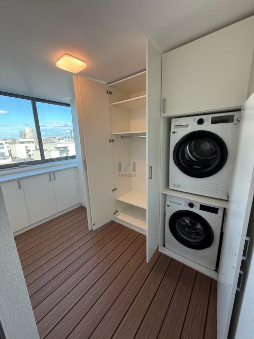 Prodaja, stan, Nova cesta, Trešnjevka, novogradnja, penthouse, 5. kat, 80 m2 ( 73 m2 + parkirno mjesto u dvorištu 12,5 m2), namještaj i tehnička oprema vrhunske kvalitete, zgrada useljena 2024. g. Otvoreni pogled, dvostrana orijentacija, puno svjetla i prozračnosti, opcija dogovora oko namještaja i tehnike. Parking u dvorištu odvojen rampom. Trešnjevačka tržnica, tramvajska stanica ( linije 3, 9, 12), trgovine, parkovi unutar 50 m. Škola i vrtić preko ceste.