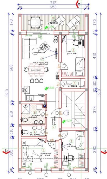 sobe 3 (10,38m2), WC-a (2,69m2) i lođe (10,94m2).