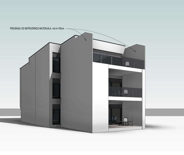 Stan se sastoji od predsoblja, open space dnevnog boravka s kuhinjom i trpezarijom, tri spavaće sobe, kupaonice, wc-a, ostave i loggie površine 12,33 m2.Pripadajuće parkirno mjesto je uključeno u cijenu.