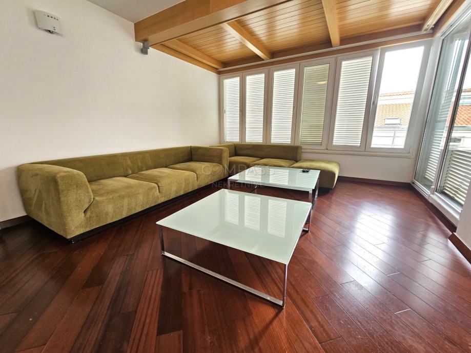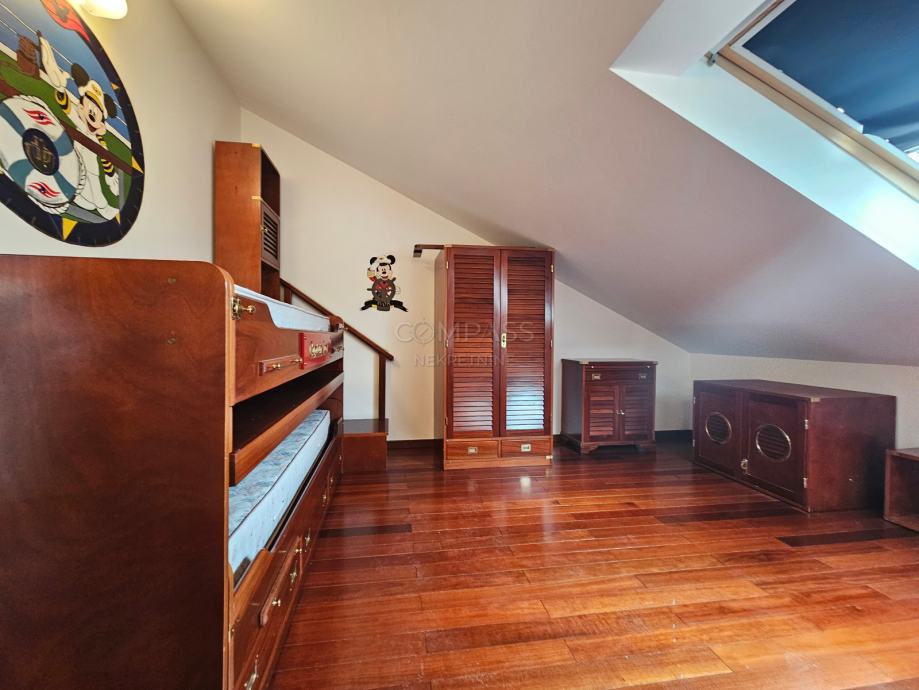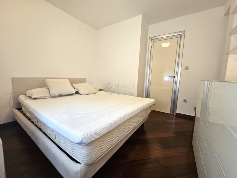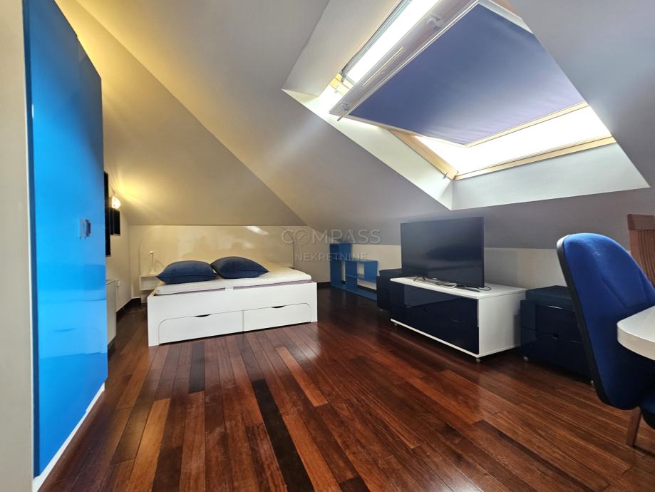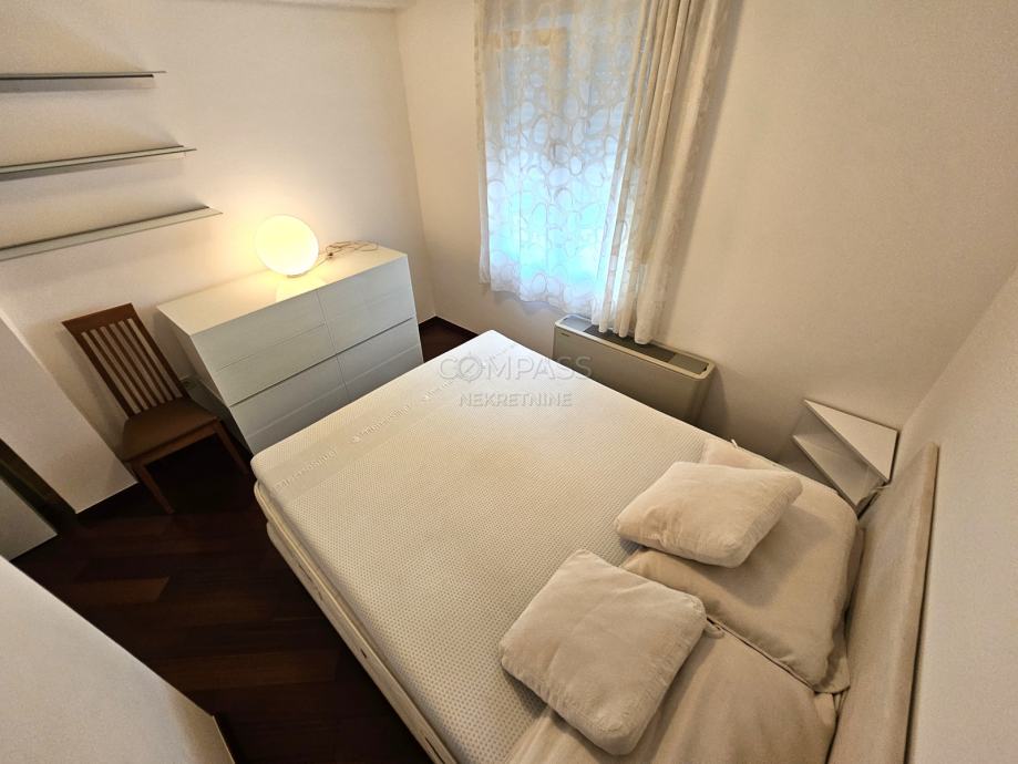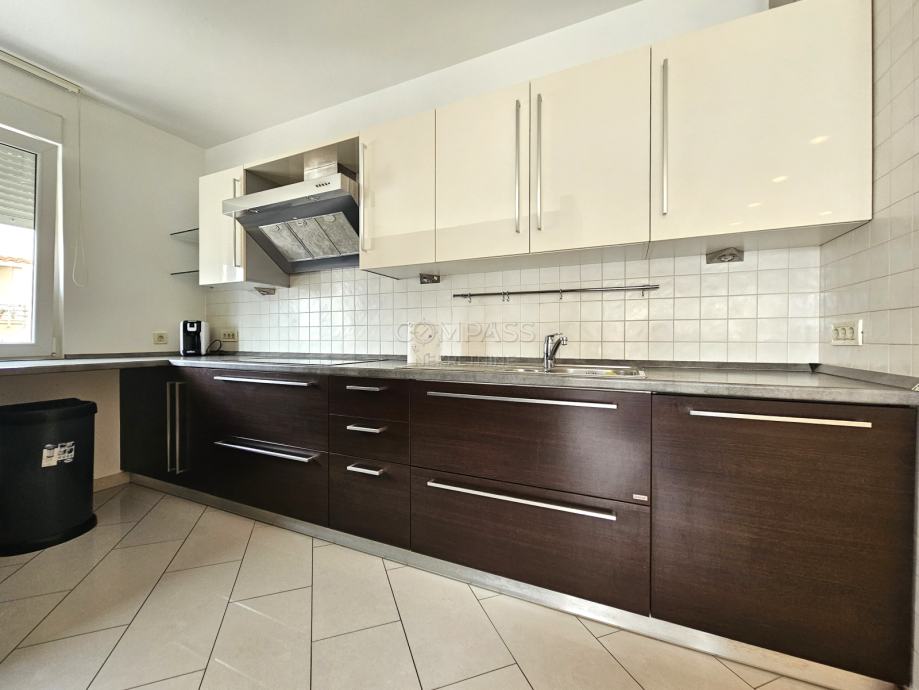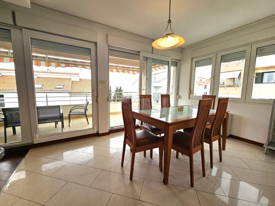 We are mediating the sale of a spacious, fully furnished duplex apartment in Meje. It covers 170 m² and the first floor consists of a hallway, two bedrooms with walk-in closets, a bathroom, and a spacious, open-space living area: Scavolini kitchen, dining room, and living room, which extends to a spacious balcony with a sea view. A beautiful mahogany-covered staircase leads to the second floor, which consists of a hallway, bathroom, two bedrooms, and storage. The apartment also includes a storage room on the ground floor of the building, as well as a garage and an outdoor parking space. All the interior doors are custom-made, as well as the furniture, which is made of solid wood. The hot water in the apartment is provided by a large solar-powered boiler.
