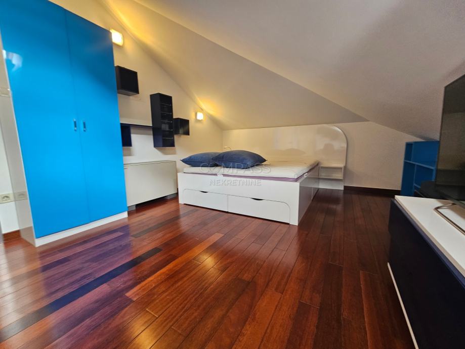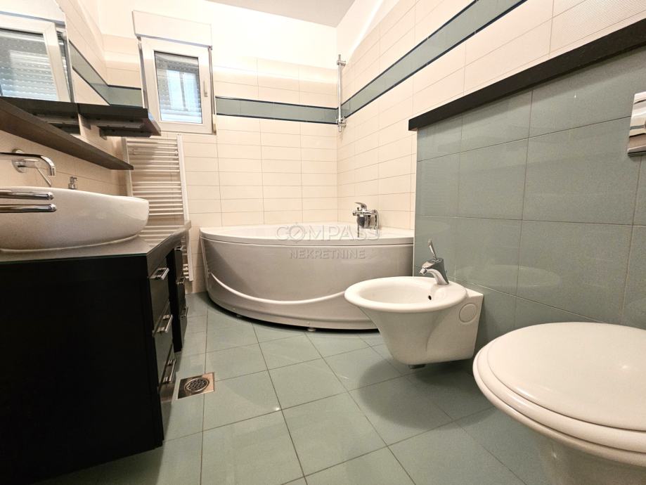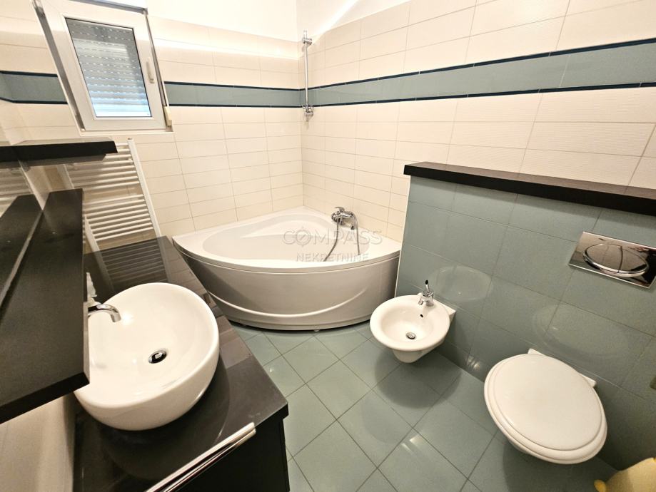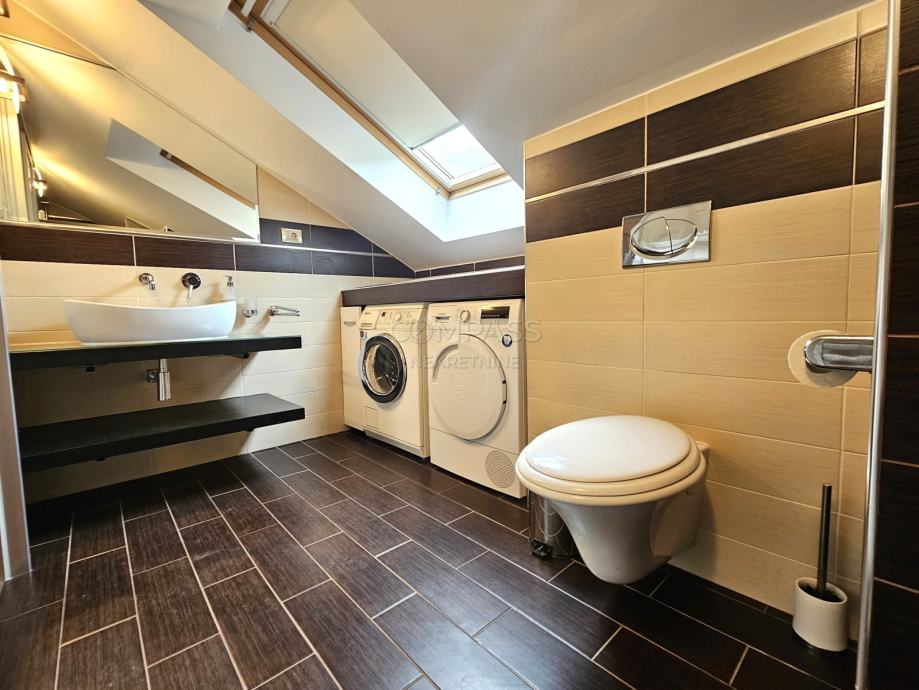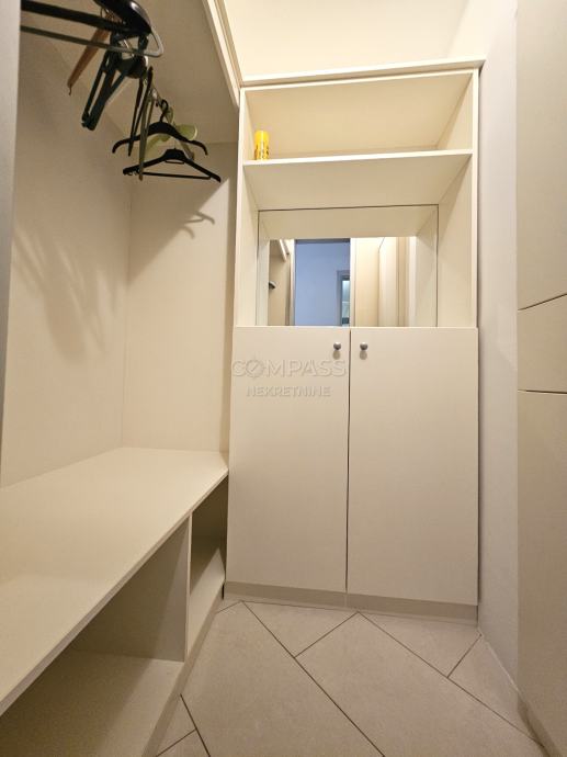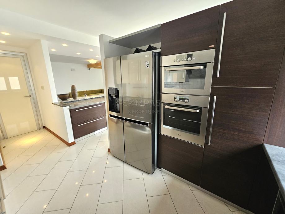 Siamo mediatori per la vendita di un ampio appartamento duplex completamente arredato a Meje. Si estende su 170 m² e il primo piano è composto da un corridoio, due camere da letto con cabina armadio, un bagno e un ampio spazio abitativo open-space: cucina Scavolini, sala da pranzo e soggiorno, che si apre su un ampio balcone con vista mare. Una bellissima scala rivestita in mogano conduce al secondo piano, che è composto da un corridoio, bagno, due camere da letto e ripostiglio. L'appartamento comprende anche un ripostiglio al piano terra dell'edificio, così come un garage e un posto auto esterno. Tutte le porte interne sono fatte su misura, così come i mobili, che sono realizzati in legno massello. L'acqua calda nell'appartamento è fornita da un grande boiler a energia solare.