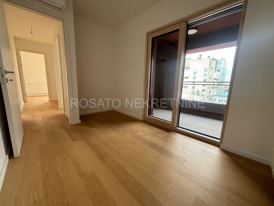 Stan se nalazi na četvrtom katu ukupne obračunske površine 87.57 m2, a sastoji se od ulaznog predsoblja, hodnika, dvije kupaonice sa toaletom, tri spavaće sobe, dnevnog boravka, kuhinje i blagovaone, dvije lođe.