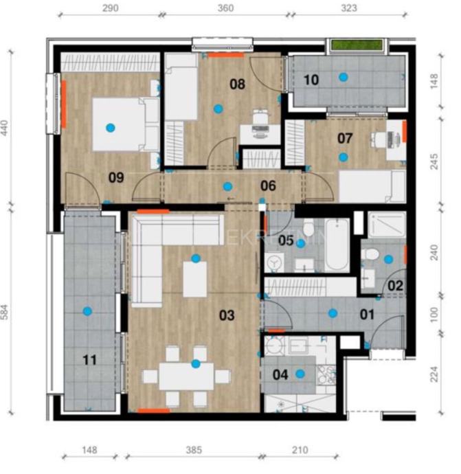 Prodaje se četverosoban stan u sklopu novogradnje tvrtke Mešić Com d.o.o. na potezu prilaz baruna Filipovića, točna adresa Cankareva 17.