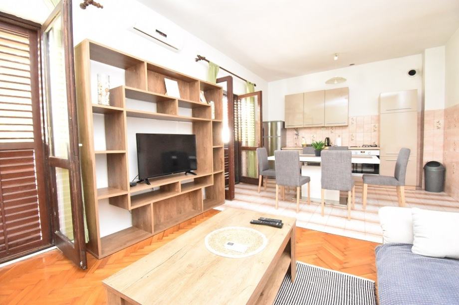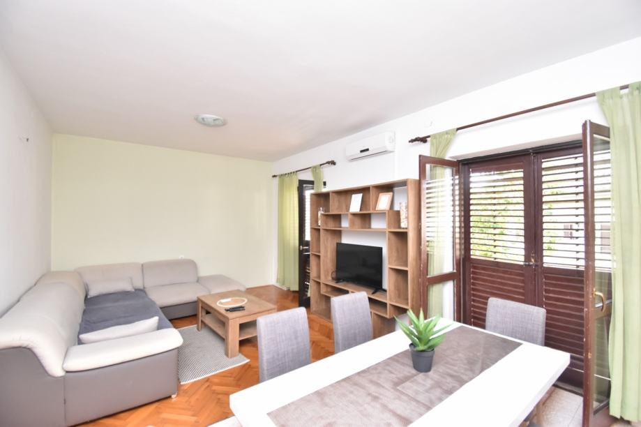 Stan je kompletno namješten i klimatiziran, ali bi trebalo napraviti i određene mjere renovacije kupaonica, keramike i sl. kako bi zablistao u punom sjaju. U kući ukupno ima 4 stambene jedinica. Kuća je etažirana s određenim omjerima. Ovom stanu pripada vrt površine 2931 m2, te parkirno mjesto površine 33,93 m2.