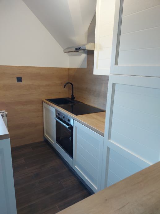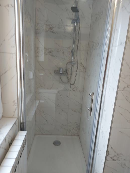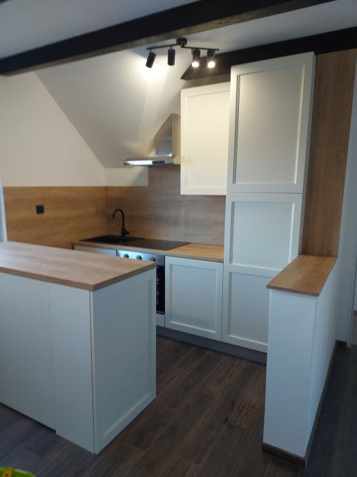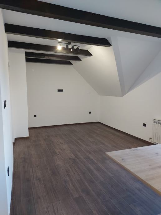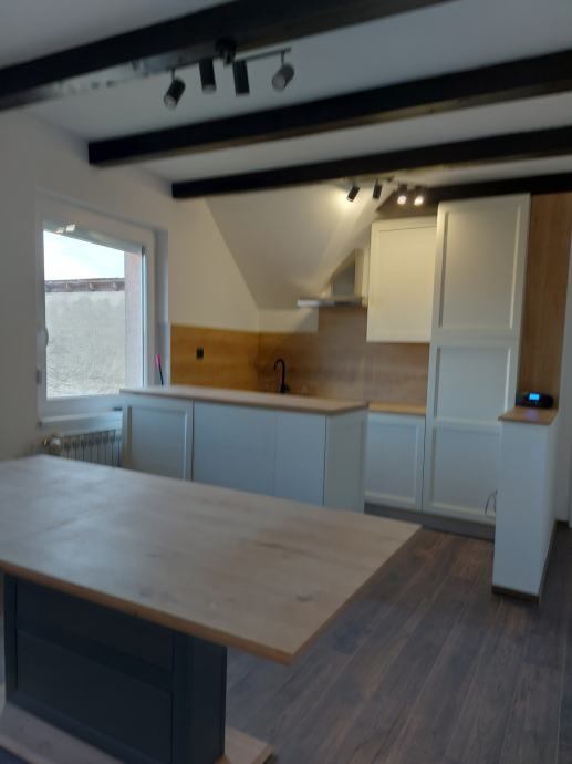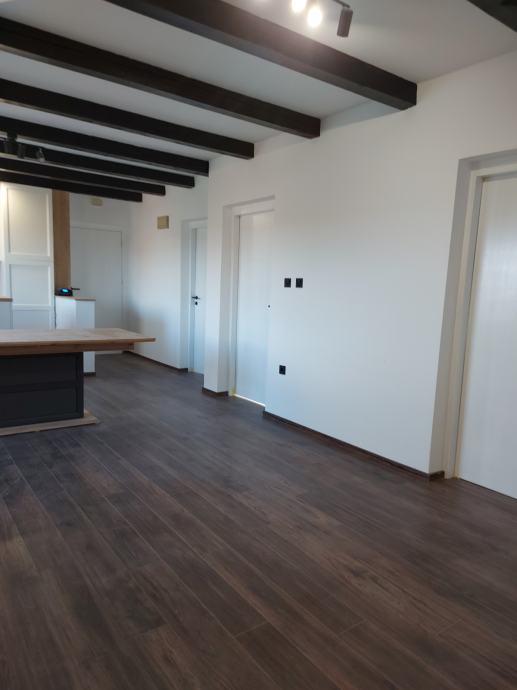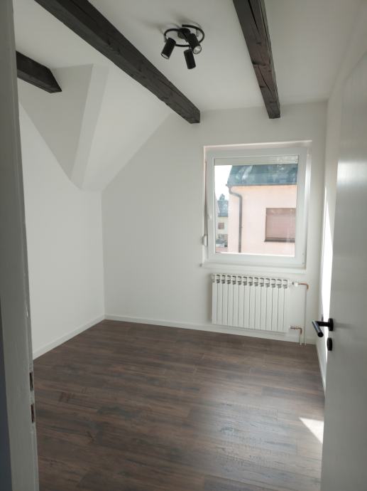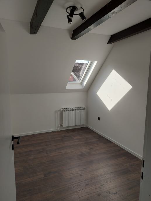 prodaje se renovirani četverosobni stan u etažiranoj kući (etaža 3) sa odvojenim ulazom. Stan je u potpunosti obnovljen; novi PVC prozori, podovi, kupaonske i električne instalacije, nova kupaonica i kuhinja sa svim aparatima. U cijenu je uključen i suvlasnički dio 1/2 u etaži 2 (ukupne površine 60,95 m2) te dvorišta i gospodarske zgrade. Kuća posjeduje uporabnu i građevinsku dozvolu.