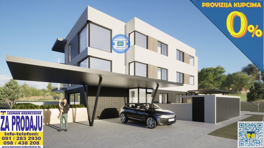 NOVO!! NOVO!! NOVO!! NOVI MODERNI LUKSUZNI ČETVEROSOBAN STAN NA DRUGOM KATU S LOĐOM POVRŠINE 90,71 m2!! PRIPADAJUĆI NATKRIVENI PARKING !! CENTRALNO PODNO PLINSKO GRIJANJE (KODENZACIJSKI KOMBI BOJLER)!!