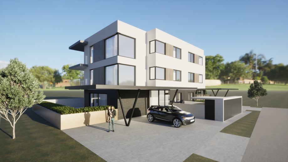 Moderna stambena luksuzna vila pozicionirana je na lokaciji šireg centra Donjeg grada - Zeleno polje. Stan se nalazi u mirnijoj zoni stanovanja, u blizini osječke promenade. Zahvaljujući svom položaju, zgrada je namijenjena onima koji žele da im svi sadržaji koje nudi centar Donjeg grada budu lako dostupni, a opet žele imati dovoljno životnog prostora, te udobnosti i komfor koji pružaju nova arhitektonska i građevinska rješenja. Nabrojat ćemo samo neke od sadržaja koji se nalaze u neposrednoj blizini kuća u novogradnji, a više su no bitni za kvalitetno i jednostavno odvijanje života: