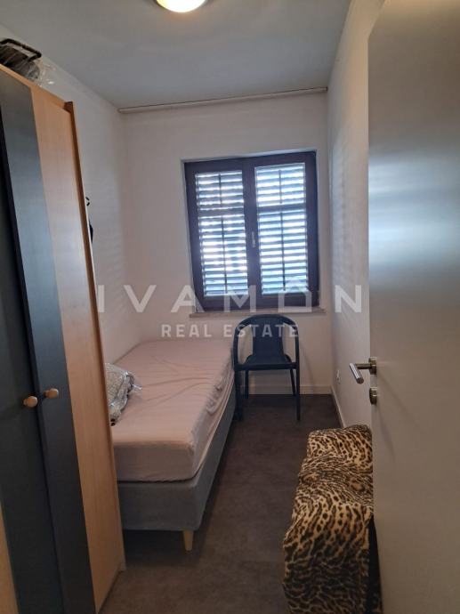 Prodaje se stan od 86,89 m2, koji se nalazi djelomično u suterenu i djelomično u prizemlju. Sastoji se od 4 spavaće sobe od kojih jedna ima vlastito kupatilo, dnevnog boravka sa kuhinjom, kupatila, hodnika, spremišta, terase i dvorišta. Stan je nedavno adaptiran, prodaje se namješten a od mora je udaljen svega 1 km.