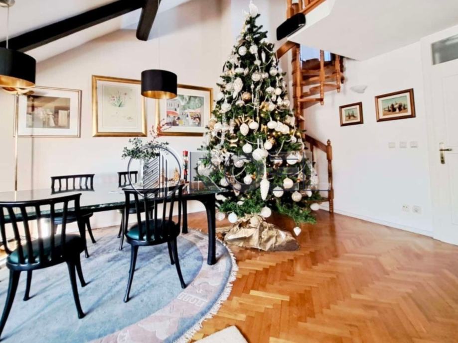 Prodaje se stan zajedno s konobom i garažom, NKP 192.12 m². Konoba i garaža su etažirani odvojeno od stana te iz tog razloga postoji mogućnost kupnje samo stana ili samo konobe u podrumu s garažom. Četverosobni stan smješten u potkrovlju urbane vile na Lašćini, NKP 107.04 m². Prostire se na dvije etaže. Prvu etažu čini hodnik, dvije spavaće sobe od kojih jedna trenutno služi kao garderoba i ima izlaz na balkon, kupaonica s wc-om, kuhinja s ostavom te dnevni boravak s blagovaonom iz kojeg se dolazi drvenim stepenicama do galerije na kojoj se nalazi spavaća soba ( trenutno radna soba) i toalet. Na drugoj etaži moguće je izvesti još jednu spavaću sobu. Stan je opremljen klima uređajem, protuprovalnim vratima te video portafonom. Pod je obložen parketom i keramikom. Grijanje je etažno plinsko centralno. Stan je renoviran 2021. godine. Orijentacija stana je zapad i istok. Konobu čine veliki dnevni boravak s kaminom, blagovaona i toalet. Iz podruma se izlazi na stubište koje vodi do pokrovlja urbane vile. Cijena stana: 330.000,00 € Cijena podruma: 90.000,00 € Cijena stana i podruma: 400.000,00 € LOKACIJA: Četverosobni stan smješten na Lašćini. Odlične prometne povezanosti. Autobusna stanica Petrova (linija 202) udaljena je svega 5 min pješke od stana, a Kvaternikov trg udaljen je samo 8 min pješke od vile gdje se nalazi tramvajska stanica (linije 4,5,7,11,12,13,34) i stajalište autobusa (linije 202,201,207,204,215,216,217,237,276,290). Samo nekoliko metara od stana nalazi se Osnovna škola Zadnja klupa te Osnovna škola Ivana Filipovića. Ublizini se nalazi ljekarna, trgovine s namirnicama, pekare, frizerski saloni, ugostiteljski objekti, teretana, poliklinika, bankomat te ostali sadržaji potrebni za život.An apartment for sale together with a tavern and a garage, gross floor area 192.12 m². The tavern and the garage are on separate floors from the apartment, and for this reason there is the possibility of buying only the apartment or only the tavern in the basement with the garage. Four-room apartment located in the attic of an urban villa in Lašćina, NKP 107.04 m². It is spread over two floors. The first floor consists of a hallway, two bedrooms, one of which currently serves as a dressing room and has an exit to the balcony, a bathroom with a toilet, a kitchen with a pantry, and a living room with a dining room, from which you can reach the gallery with the bedroom ( currently a study) and a toilet. On the second floor, it is possible to build another bedroom. The apartment is equipped with air conditioning, a security door and a video intercom. The floor is covered with parquet and ceramics. The heating is gas central. The apartment was renovated in 2021. The orientation of the apartment is west and east. The tavern consists of a large living room with a fireplace, a dining room and a toilet. From the basement there is a staircase that leads to the cover of the urban villa. Price of the apartment: €330,000.00 Price of the basement: €90,000.00 Price of the apartment and basement: €400,000.00 LOCATION: Four-room apartment located in Lašćina. Excellent transport connections. The bus stop Petrova (line 202) is only a 5-minute walk from the apartment, and Kvaternikov Square is only an 8-minute walk from the villa, where there is a tram station (lines 4,5,7,11,12,13,34) and a stop bus (lines 202,201,207,204,215,216,217,237,276,290). Just a few meters from the apartment is Zadnja klupa Elementary School and Ivan Filipović Elementary School. Nearby there is a pharmacy, grocery stores, bakeries, hair salons, restaurants, gym, polyclinic, ATM and other amenities necessary for life.