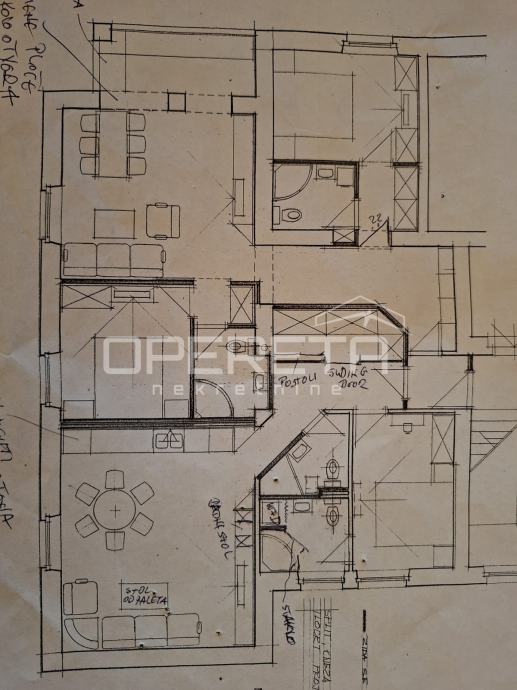 Stan se sastoji od 4 spavaće sobe, dnevnog boravka, kuhinje, spremišta, kupaonice, dodatnog toaleta, prostranog hodnika i loggie. Raspored je funkcionalan, a sama kvadratura nudi mogućnost preinake u dvije zasebne stambene jedinice, što otvara dodatni potencijal, bilo za život, bilo za investiciju.
