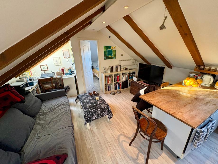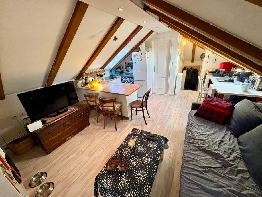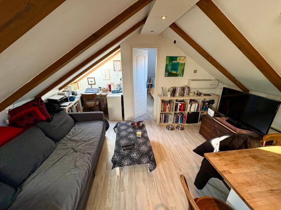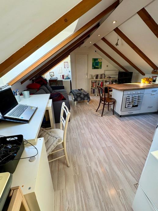 An attractive, bright and tastefully furnished apartment is for sale in one of the most desirable locations in the very centre of Split. The apartment is located on the 4th floor of a residential building without an elevator and occupies the top floor (attic), ensuring peace, privacy and a pleasant living atmosphere.