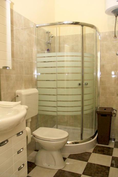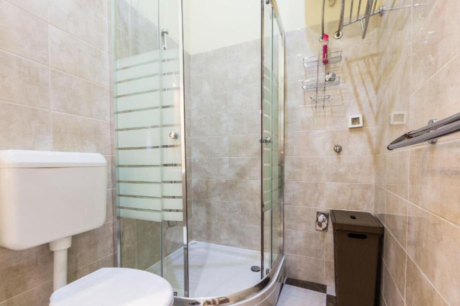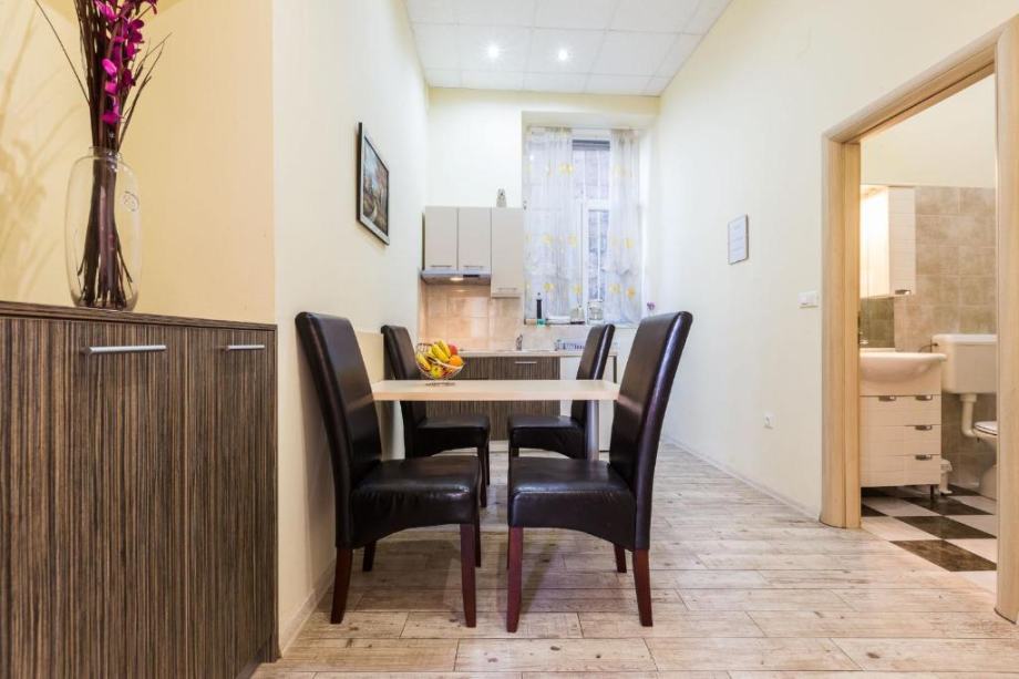 Ima čajnu kuhinju s električnim štednjakom s hladnjakom, mikrovalnom pećnicom i kuhalom za vodu, aparatom za čaj/kavu, kuhinjskim posuđem i priborom, te ima glačalo i grijač, dok se praonica rublja nalazi neposredno ispred stana.