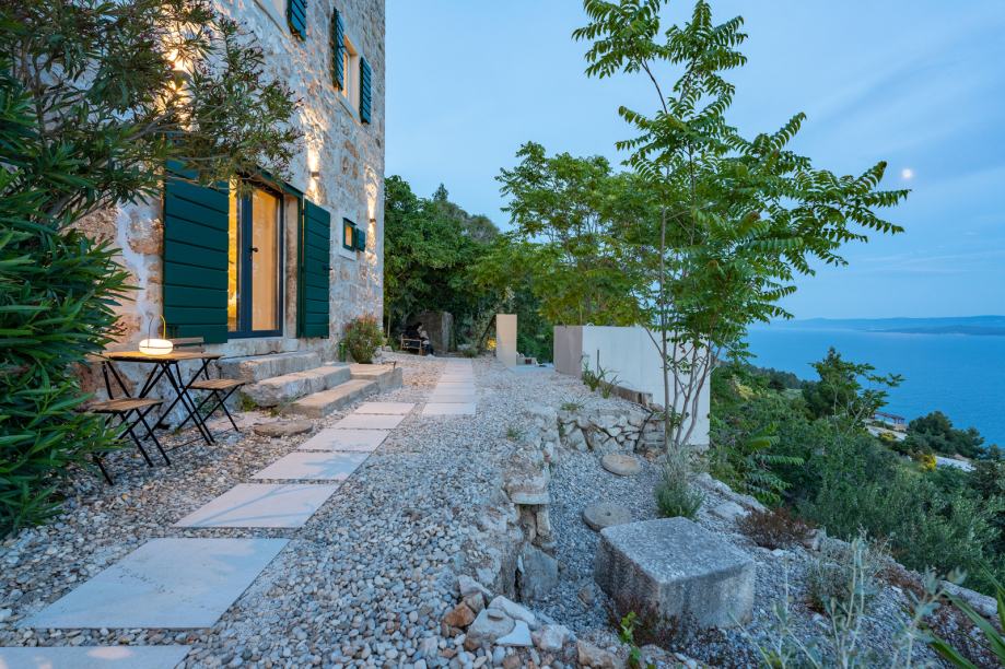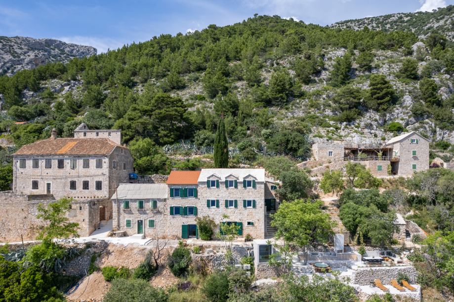 Nestled on the serene island of Brac in Croatia, this harmoniously renovated stone house embodies an architectural marvel that respectfully integrates historical charm with contemporary design. Positioned amidst breathtaking wilderness, the retreat offers unparalleled vistas of the azure seas, overlooking the most exquisite turquoise beach below. Despite its natural seclusion, it remains a mere 3 kilometers from the vibrant town of Bol and the renowned Zlatni Rat beach, an epitome of worldly beauty.