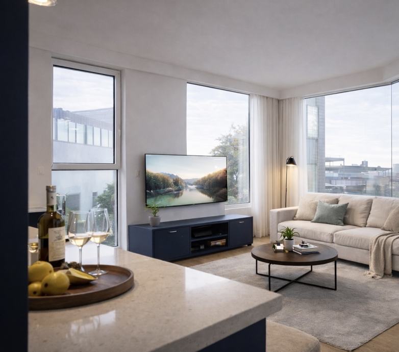 Prodaje se moderan jednosobni stan u kvalitetnoj novogradnji, idealan za stanovanje ili investiciju. Stan obiluje prirodnim svjetlom zahvaljujući velikim staklenim površinama i pažljivo osmišljenom rasporedu.