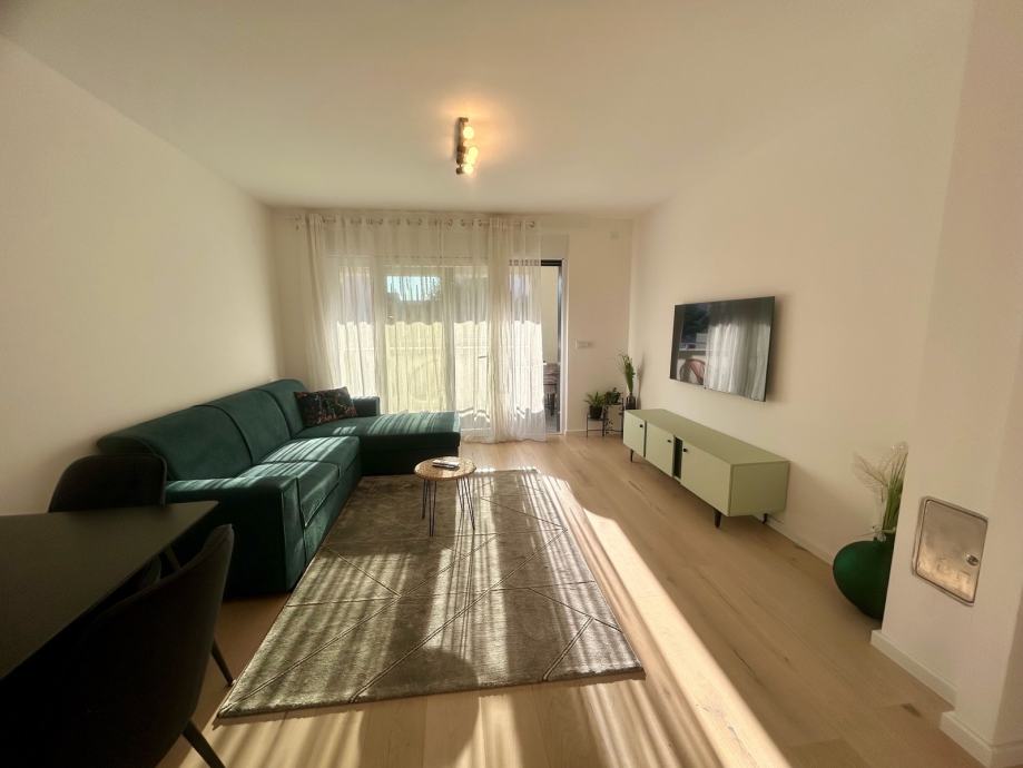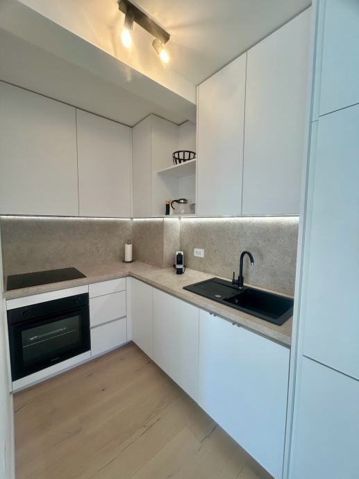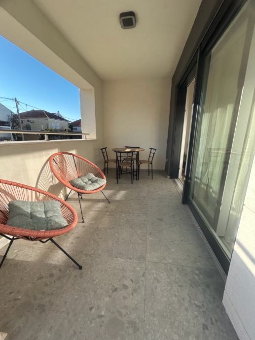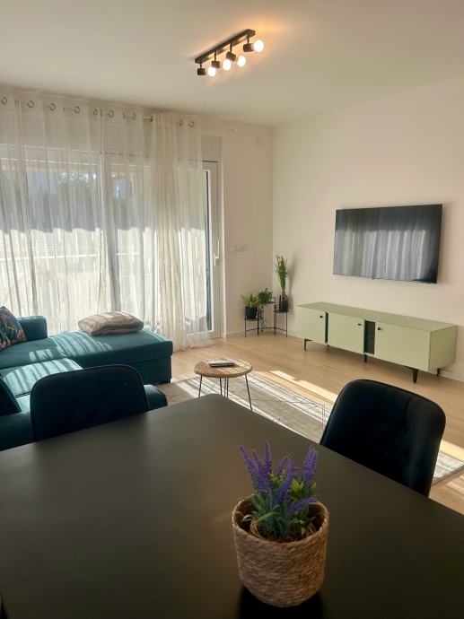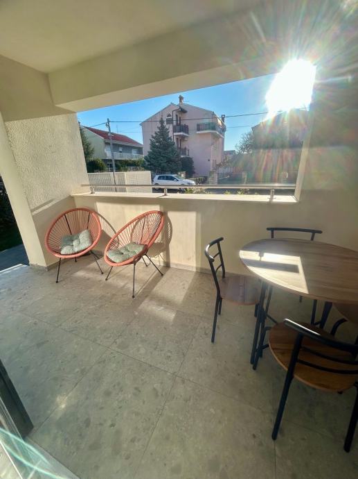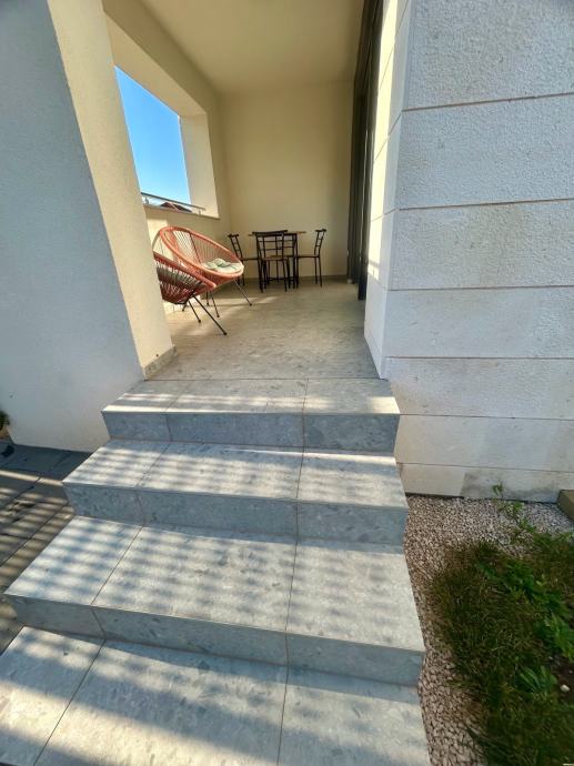 Potpuno novoopremljena novogradnja u manjoj zgradi sa privatnim dvorištem, 200 m od plaže Uskok. Najam uz ugovor kroz cijelu godinu.