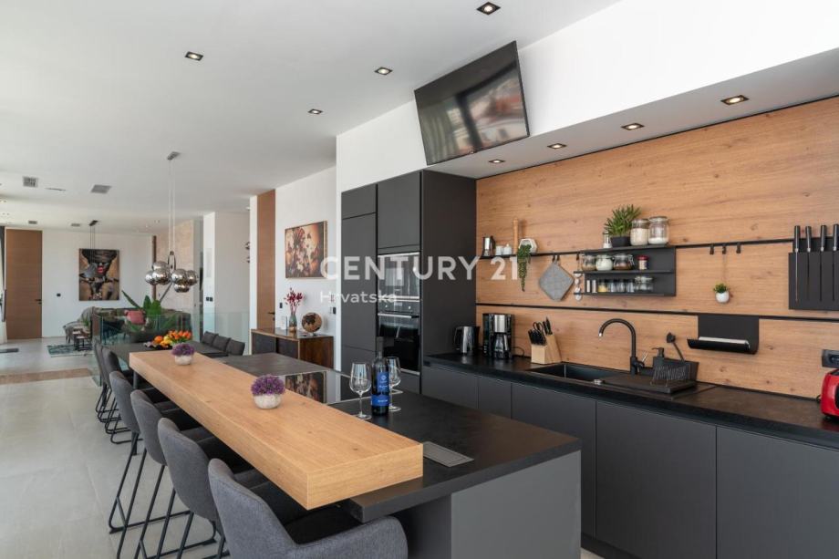 - Profesionalna kuhinja, blagovaonica i dnevni boravak s prozorima od poda do stropa