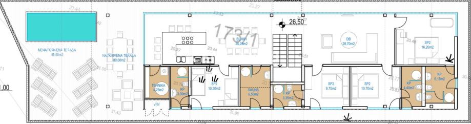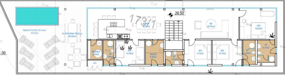 - Velika terasa od 125,5 m2 dizajnirana za život na otvorenom