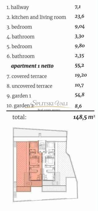 Posredujemo u prodaji dvosobnog stana u prizemlju urbane vile koja se nalazi na Čiovu.