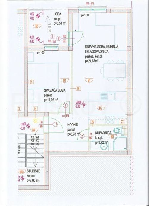 Prodaje se novoizgrađeni komforni jednosobni stan oznake S3, u prizemlju manje stambene zgrade. Stan se sastoji od spavaće sobe, dnevne sobe, kuhinje i blagovaonice, kupaonice i hodnika, površine 45.23 m2, s lođom površine 5.51 m2, ukupne korisne površine 50.74 m2.