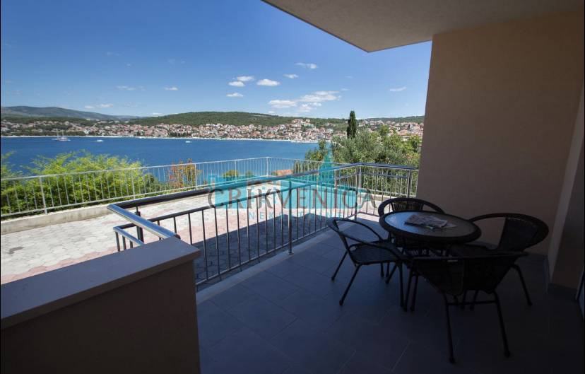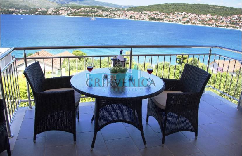 Samo 50 metara od plaže, na mirnom mjestu prodajemo apartmansku kuću koja ima četiri manja apartamana površine 60 m2 te jedan veći od 80 m2.