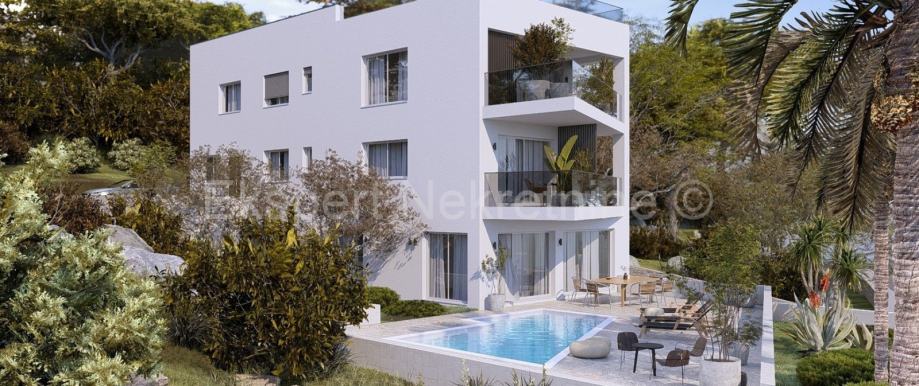 Zgrada se nalazi na odličnoj lokaciji južne strane Čiova, udaljena 20 m od mora i plaže. Kvalitetna gradnja (vrhunska keramika,podno grijanje u cijelom stanu sa regulacjiom u svim prostorijama,klima uređaj u svim prostorijama, komarice,električne rolete, pvc stolarija,otvaranje vrata sa kodom(šifrom) itd..).Ishođenje građevinske dozvole je pri kraju,a uskoro se očekuje i početak radova a dovršetak 12 mjeseci kasnije.Vlasništvo uredno.