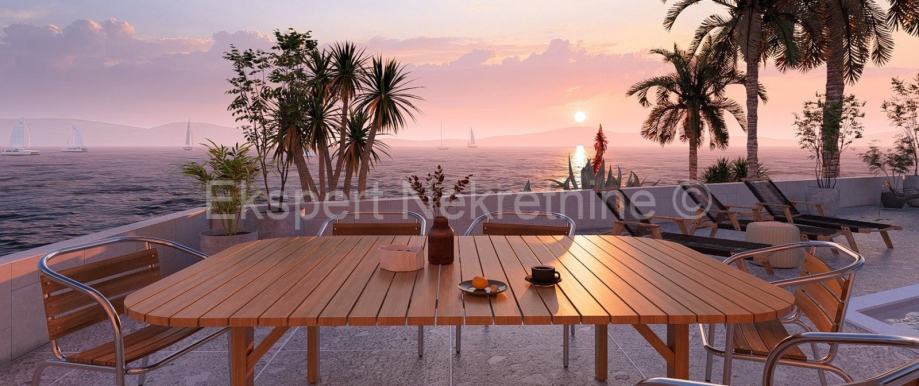 Čiovo,Okrug Gornji, PRVI RED DO MORA,dvosoban stan 69 m2 novogradnji sa samo 4 stana. Stan se nalazi na prvom katu zgrade ,sjever-istok-jug je orijentiran,a sastoji se od dvije spavaće sobe,kupatila,hodnika, kuhinje sa blagovaonicom i velikim dnevnim boravkom te balkona (12 m2) sa kojeg ima otvoren i neometan pogled na more i otoke.Stanu pripada jedno parking mjesto. Obzirom da je zgrada prvi red do mora iz stana ima otvoren i neometan pogled na more i otoke od kojeg je stan udaljen samo 20 m.