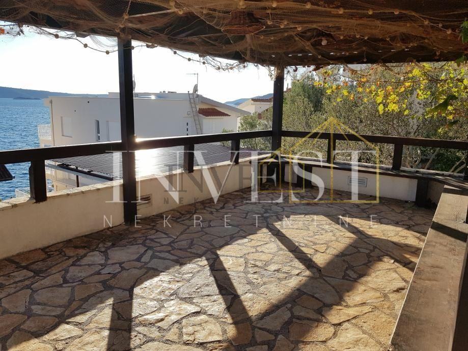 Posredujemo u prodaji kuće tlocrtno 10x10 m sa okućnicom, dvije garaže, terasama, svega 40 m od mora. U prizemlju kuće se nalazi apartman, konoba sa kaminom, garaže te velika terasa, na prvom katu je trosoban stan od 100 m2, sa dnevnim boravkom, kuhinja, blagovaonica, kupaonica te terase površine 22 m2. Drugi kat se sastoji od dva apartmana s dvije sobe, kupaonice sa tušem i wc-om i terase, svaki apartman površine 50 m2. U potkrovlju se nalazi dnevni boravak sa kuhinjom i blagovaonicom okružen velikim prozorima s pogledom na cijeli akvatorij, otoke Šoltu, Drvenik . Oko kuće su kaskadni vrtovi, put do mora, plaža udaljena svega 40 m. U neposrednoj blizini se smjestila mala šarmantna lučica u kojoj se nalazi vez za brod. Izuzetno miran i tih predio, predivan i jedinstven pogled. Boravak u ovoj nekretnini pruža potpun odmor i užitak.