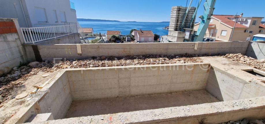 Čiovo,Okrug Gornji, trosoban stan 84 m2+terasa 30 m2 plus veliki vrt 202 m2 plus vlastiti bazen 19 m2 u novogradnji,samo 220 m od mora i plaže sa pogledom na more .Stan se nalazi na prizemlju zgrade, istok-jug-zapad orijentiran,a sastoji se od tri spavaće sobe od kojih jedna sa vlastitim kupatilom,kupatila,hodnik,kuhinja sa blagovaonicom i velikim dnevnim boravkom te terasa (30m2) i vrt (202 m2) te bazen (19m2).Stan iako je na prizemlju ima otvoren pogled na more i otoke.Stanu pripada i jedno veliko vanjsko parking mjesto.