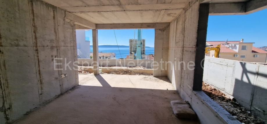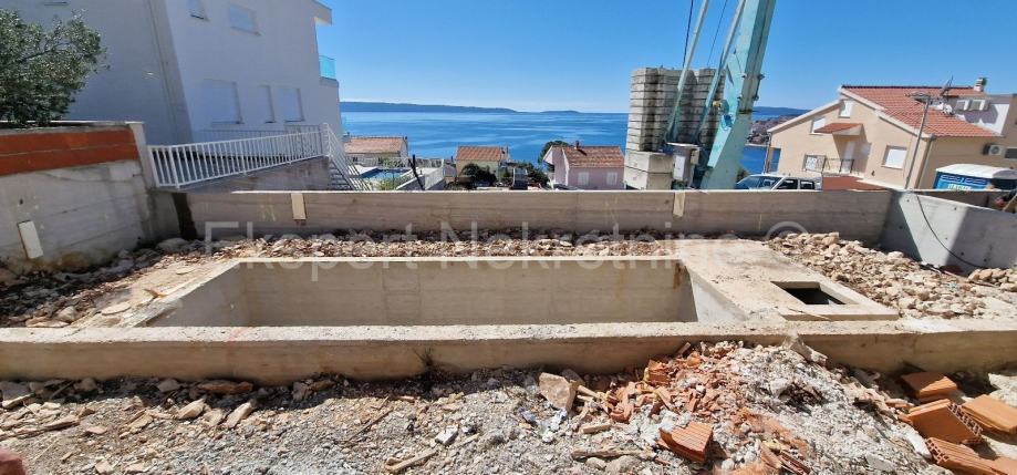 Zgrada se nalazi na odličnoj lokaciji , južna strana Čiova, udaljena samo 220 m od mora i plaže. Kvalitetna gradnja ( kvalitetna keramika,podno grijanje u cijelom stanu,klima uređaj u svim prostorijama, komarice,električne rolete, pvc stolarija itd..).Zgrada je u fazi grubih građevinskih radova a planirani dovršetak je kraj 2025.godine.