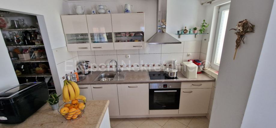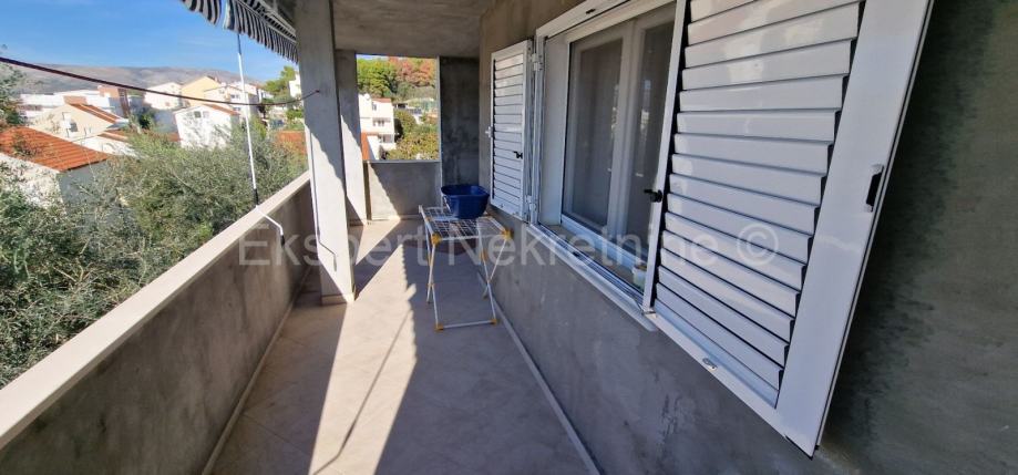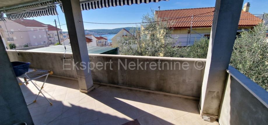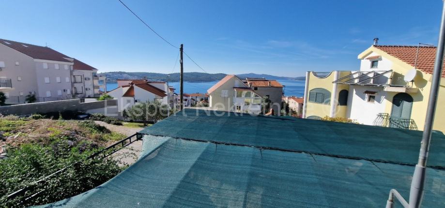 Čiovo ,Okrug Gornji,poviše glavne plaže, manja samostojeća kuća 248 m2,sa 2 apartmana i pomoćnim objektom (komin) na parceli od 648 m2. Na prizemlju se nalazi jedan dovršen dvosoban stan sa terasom,te dvije ostave dok se na 1. katu nalazi veliki trosoban stan sa tri velike sobe,kupatilom,wc-om,hodnikom ,velika kuhinja sa blagovaonicom i veliki dnevni boravak sa kojeg se izlalzi na veliku terasu (30m2) sa koje ima pogled na pore od kojeg je kuća udaljena 400 m.Uz kuću se nalazi i pomoćni objekat (30m2) u naravi komin prostorom za druženje te ostavom i drvarnicom Kuća ima unutarnje stubište i koje izlazi na krovnu terasu jer je moguća nadogradnja još jednog kata.Potrebno je još manje uređenje kuće . Okućnica uređena i zasađena mediteranskim voćkama i biljem.Kuća ima i nekoliko parking mjesta.Pristup asfaltiran ,gradska kanalizacija spojena. Idealno za turistički najam zbog blizine plaže i mora .Mirna lokacija.Vlasništvo uredno.