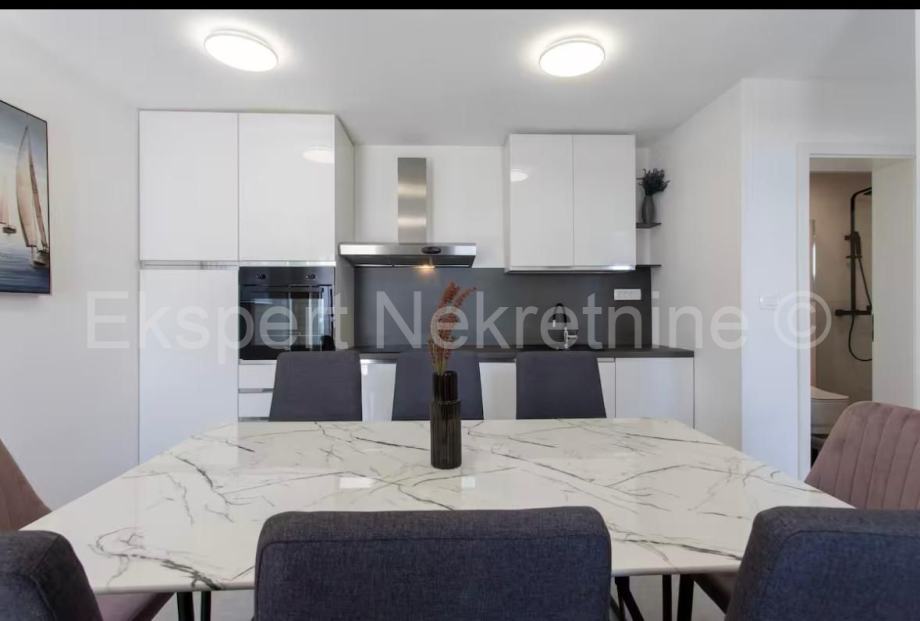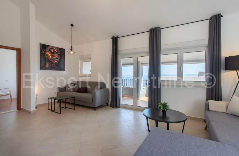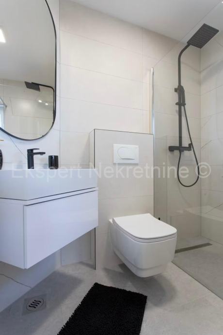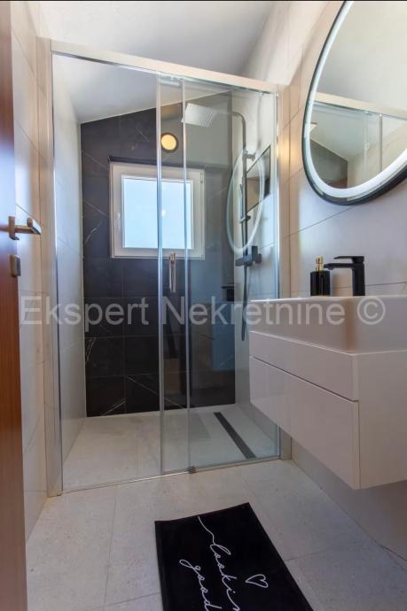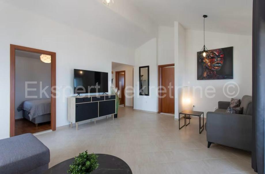 Na prizemlju se nalazi jedan dvosoban stan sa terasom, dok se na 1. katu nalazi još dvosoban stan sa dvije sobe,kupatilom,wc-om,hodnikom ,velika kuhinja sa blagovaonicom i veliki dnevni boravak sa kojeg se izlalzi na veliku terasu sa koje ima pogled na more od kojeg je kuća udaljena 190 m. .Kuća je u odličnom stanju,nedavno je obnovljena te se prodaje sa kompletnim namještajem .Okućnica uređena i zasađena mediteranskim voćkama i biljem.Kuća ima i nekoliko parking mjesta.Pristup asfaltiran. Idealno za turistički najam zbog blizine plaže i mora .Mirna lokacija.Vlasništvo uredno.