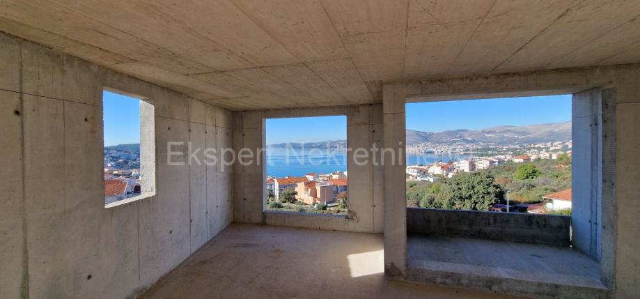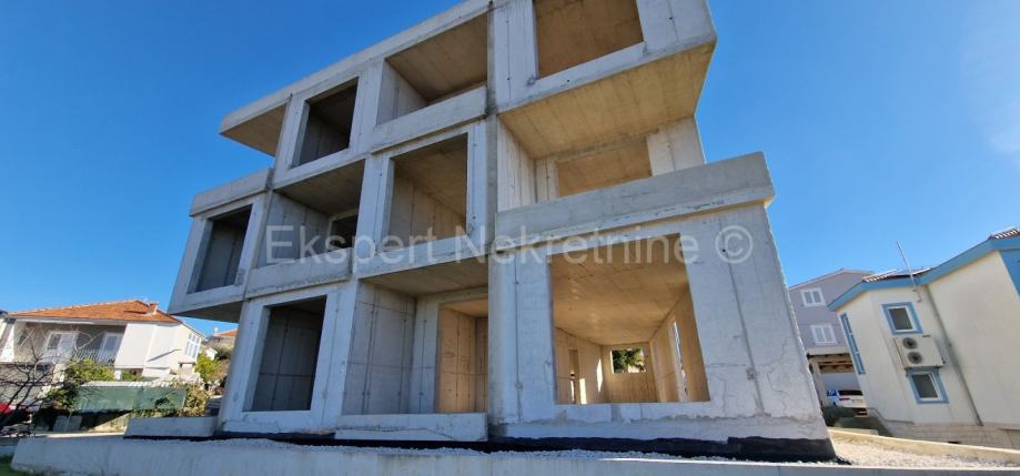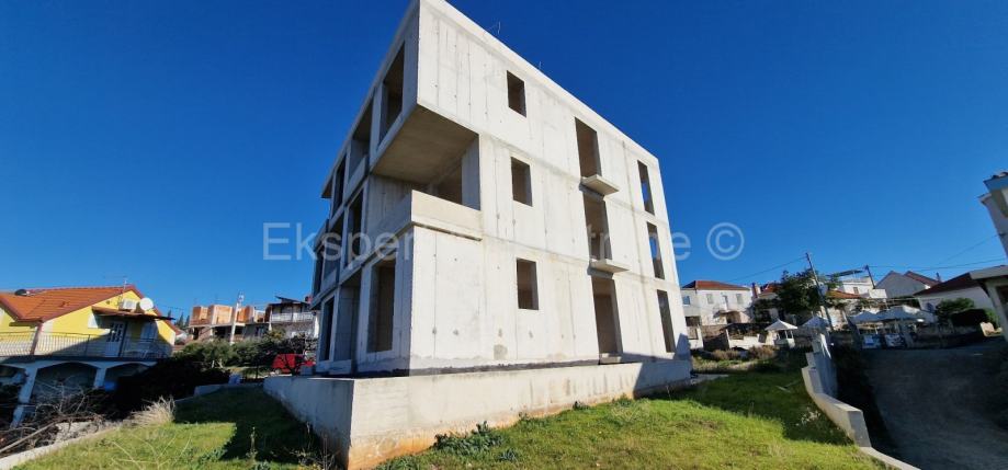 Čiovo ,Okrug Gornji,započeta apartmanska kuća sa 6 apartmana ,na tri etaže u roh bau stanju dovršenosti.Kuća se nalazi na parceli od 605 m2 ,ima tri etaže,na svakoj po dva apartmana sa lođama sa kojih se pruža lijep i neometan pogled na more. Kuća je udaljena od mora i plaže samo 450 m..Kuća ima pravomoćnu građevinsku dozvolu, za 6 apartmana te su dovršeni grubi građevinski radovi.Idealno za turistički najam zbog blizine plaže i blizine centra te lijepog i otvorenog pogleda na more .Mirna lokacija.Vlasništvo uredno.