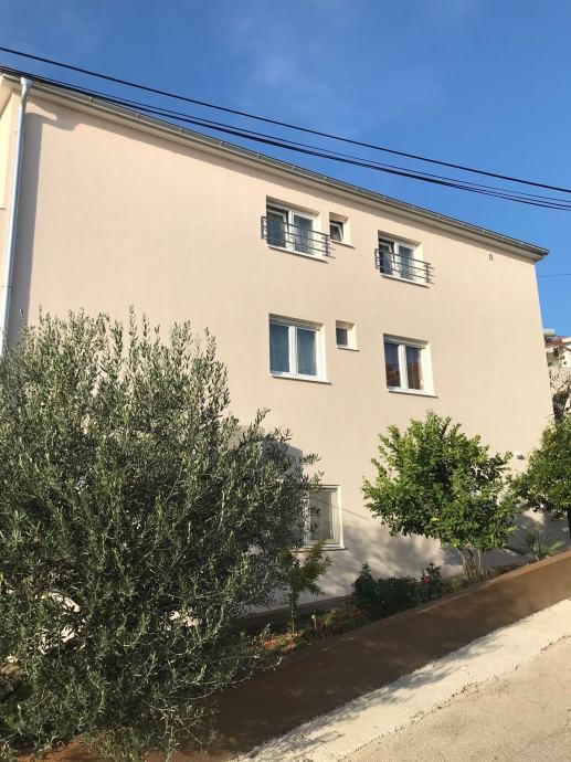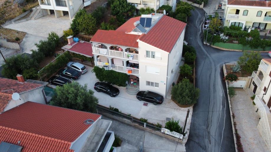 Apartmanska kuća 483 m2, 300m od plaze, sa 7 apartmana. Parcela je 920 m2, na prizemlju se nalazi jedan veliki trosobni stan, a na prvom i drugom katu se nalazi ukupno 6 apartmana,na svakom po dva dvosobna i jedan jednosoban apartman, svi apartmani su uređeni i namješteni.Kuća ima alarmni sustav te video nadzor,svi apartmani imaju elektronske hotelske brave sa karticom,te posebna ulaz preko unutarnjeg stubišta,solarne panele za toplu vodu . Kuća ima sjenicu sa roštiljem i ljetnom kuhinjom.