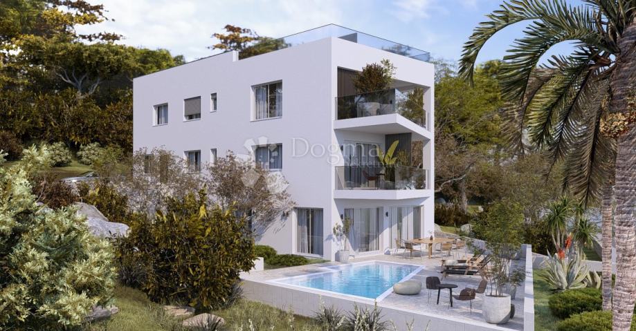 Na izuzetnoj lokaciji na južnoj strani otoka Čiova, u zgradi smještenoj u prvom redu do mora, nalazi se ovaj moderan stan koji pruža otvoren i neometan pogled na more.
