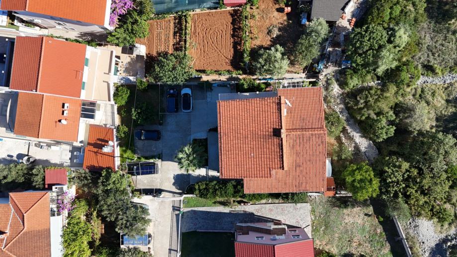 Smještena svega pedeset metara od plaže, pruža prekrasan pogled na Jadransko more i okolnu prirodu. S ukupno oko 400 kvadratnih metara stambenog prostora, plus balkoni, i zemljištem od 740 kvadratnih metara, ova kuća nudi obilje prostora i komfora.