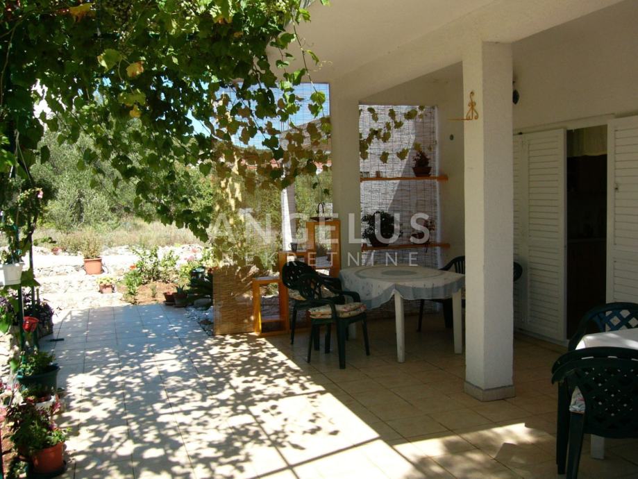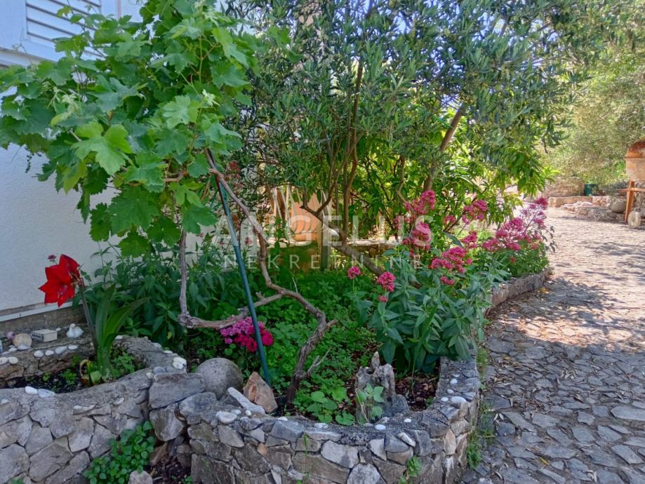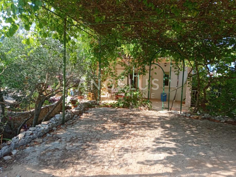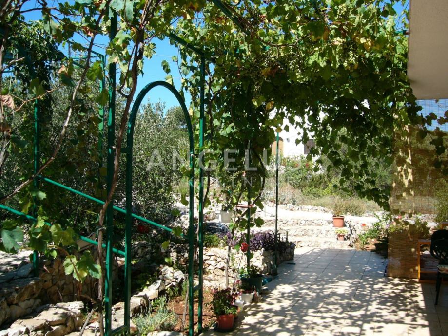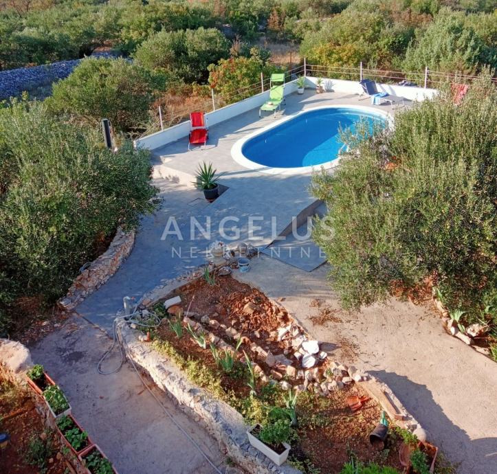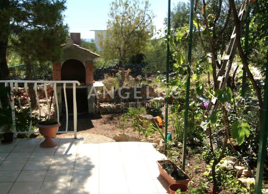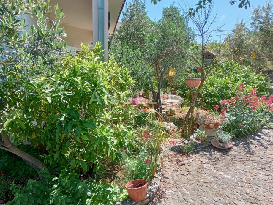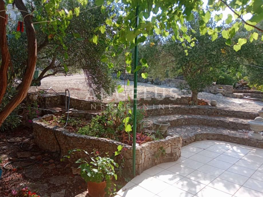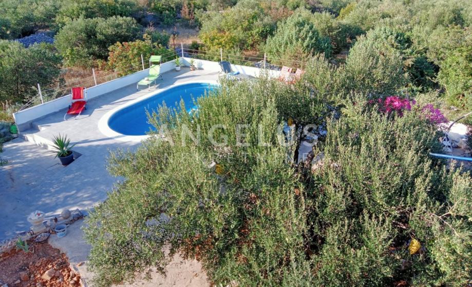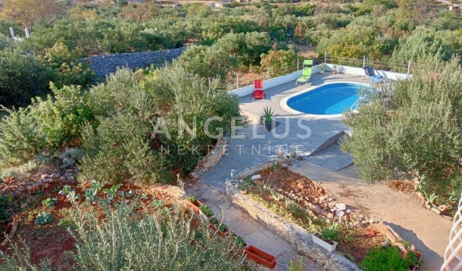 Na okućnici površine cca 1100 m2 nalaze se bazen i sunčalište, stabla maslina i razno bilje, roštilj te 4 mjesta za parkiranje. Ispod bazena je strojarnica.