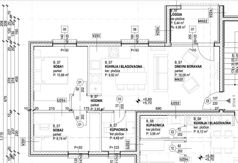 Zatvorena stambena površina 54,6 m2 i lođa od 5,45 m2 naslonjena na dnevni boravka.