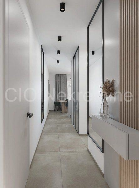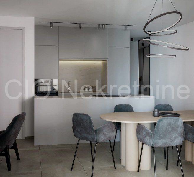 Sastoji se od 2 sobe, kuhinje s blagovaonicom i dnevnim boravkom, 2 kupaonice, hodnika, te ima natkrivenu terasu i veliku krovnu terasu.