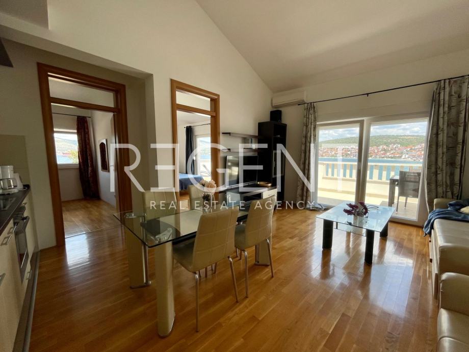 Prodaje se trosoban stan površine 70 m² na atraktivnoj lokaciji na Čiovu, smješten na 3. katu stambene zgrade izgrađene 2008. godine. Stan je 1. red do mora, s otvorenim pogledom na more i orijentacijom sjever-jug, što osigurava obilje prirodne svjetlosti tijekom cijelog dana.Opis nekretnine:Stan se sastoji od:Dvije spavaće sobeKupaonice + dodatnog gostinjskog toaletaVelikog dnevnog boravka s kuhinjom i blagovaonicomProstranog balkona s pogledom na moreOprema i dodatne pogodnosti:Stan je potpuno namješten i odmah useljivKlima uređaj za ugodnu temperaturu tijekom cijele godineProtuprovalna vrata za dodatnu sigurnostGarderobni ormari pružaju dovoljno prostora za pohranuVanjsko natkriveno parkirno mjesto uključeno u cijenuStan se nalazi u neposrednoj blizini svih potrebnih sadržaja – trgovina, restorana, kafića i javnog prijevoza. Idealna je nekretnina za cjelogodišnje stanovanje, turistički najam ili odmor.Kontaktirajte nas za više informacija i dogovor o razgledavanju!Za više informacija, kontaktirajte našeg agenta na brojeve telefona: