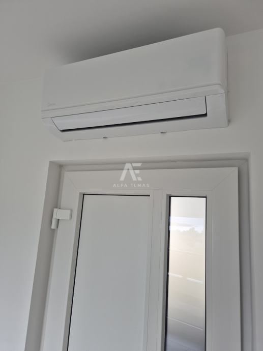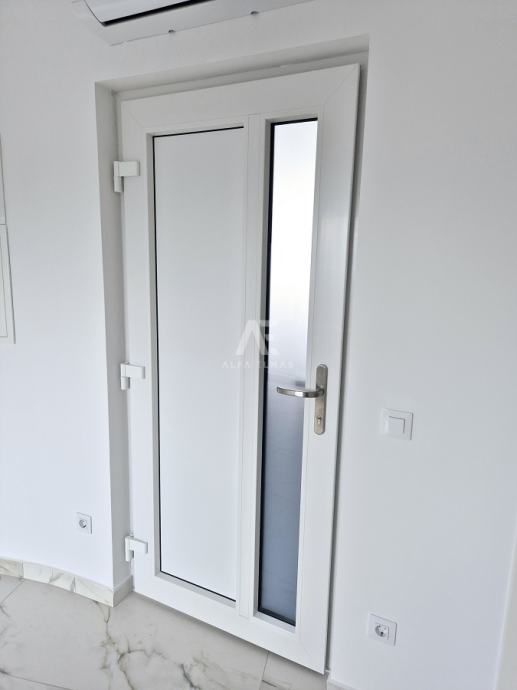 Oprema uključuje PVC stolariju s roletama, kvalitetnu talijansku keramiku i sanitarije, klima uređaj, te mogućnost grijanja na drva. Apartmanu pripada jedno parkirno mjesto. Lokacija je mirna i nalazi se samo 400 m od mora, šetnice i više restorana. Budući da je nekretnina u sustavu PDV-a, kupac je oslobođen plaćanja poreza na promet nekretnina.