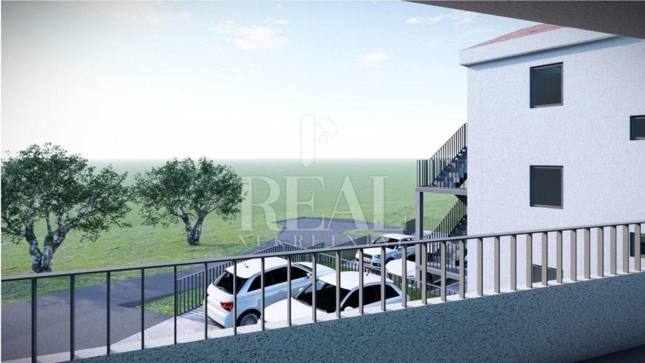 Sastoji se od dnevnog dijela s kuhinjom, blagovaonom i boravkom sa izlazom na netkrivenu terasu, dvije spavaće sobe i kupaonice.