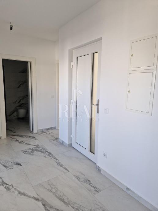 Smješten na prvom katu novogradnje koja se sastoji od tri ulaza sa po tri stambene jedinice u svakom.