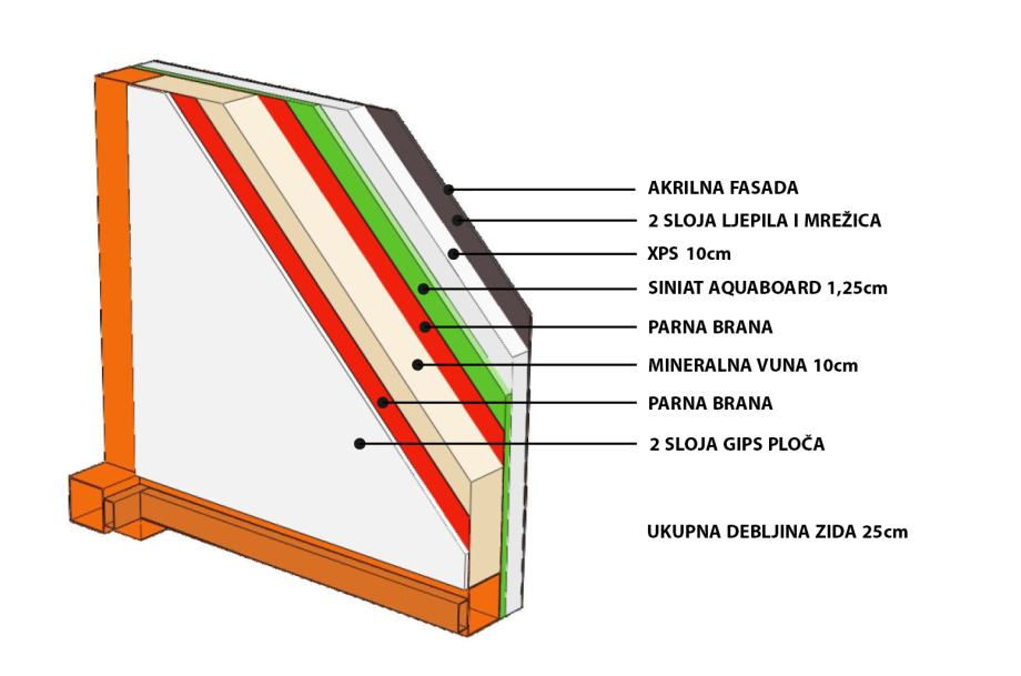 · Vanjski zidovi od vodootpornih panela, 100 mm stiropora, rabic mreža, lijepila i akrilne fasadne mase