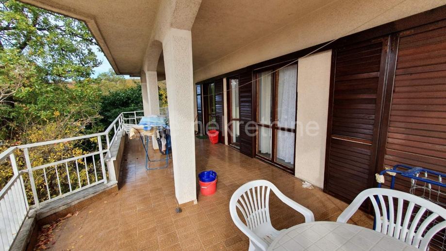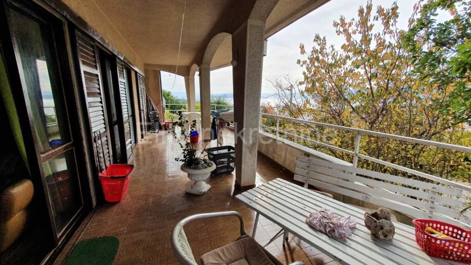 Ima prekrasni balkon koja se proteže južnom stranom kuće, te sa koje se pruža prekrasan panoramski pogled na Kvarnerski zaljev, otoke, Opatiju i planinu Učku.