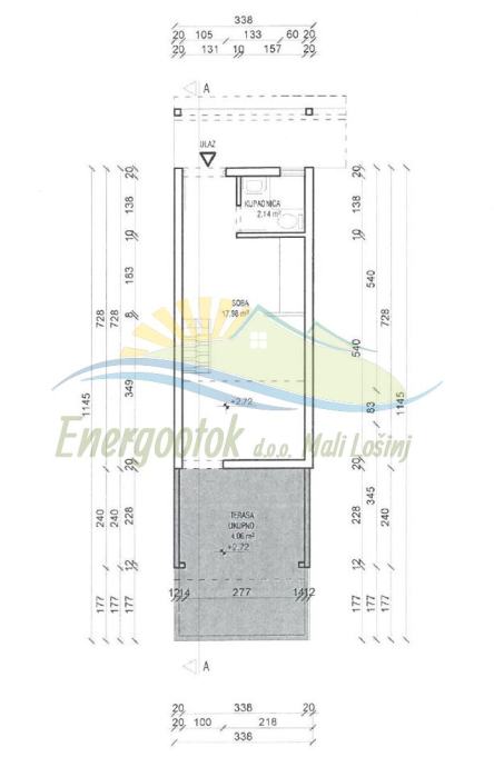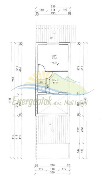 - Kat: kuhinja/dnevni boravak/blagovaonica, kupaonica i terasa